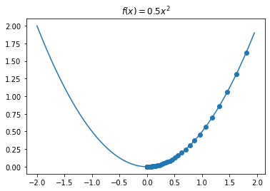 1 | # 上图中函数公式 f(x)=0.5x^2 梯度下降算法演示 |