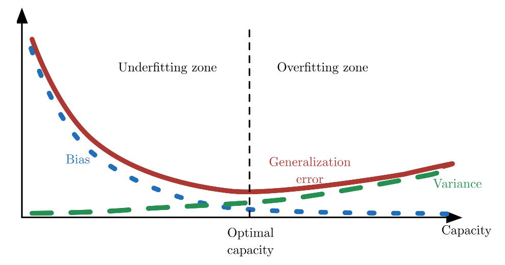 当机器学习算法的容量适合于所执行任务的复杂度和所提供训练数据的数量时,算法效果通常最佳。
